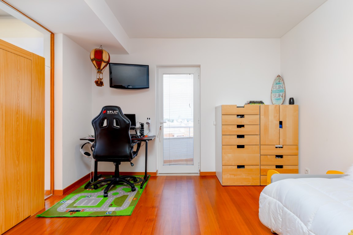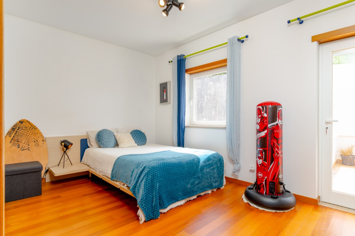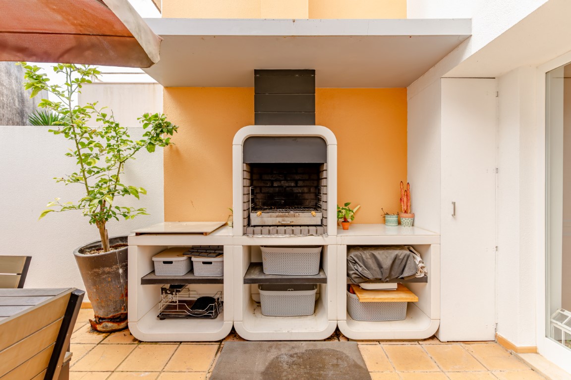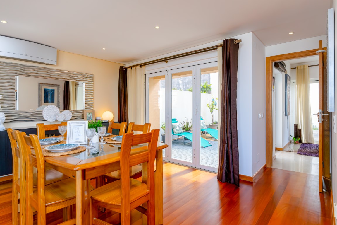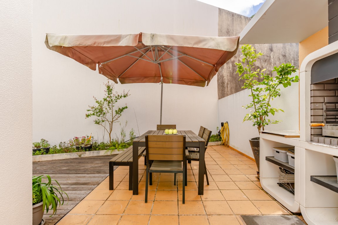 Este espaço extra é apenas uma das características que tornam esta moradia tão especial. Complementando este espaço, a propriedade inclui uma cozinha totalmente equipada com eletrodomésticos encastrados da marca Teka, acesso direto a uma acolhedora copa e à churrasqueira ao ar livre, além de um logradouro espaçoso de 70 m2, perfeito para momentos de lazer ao ar livre.