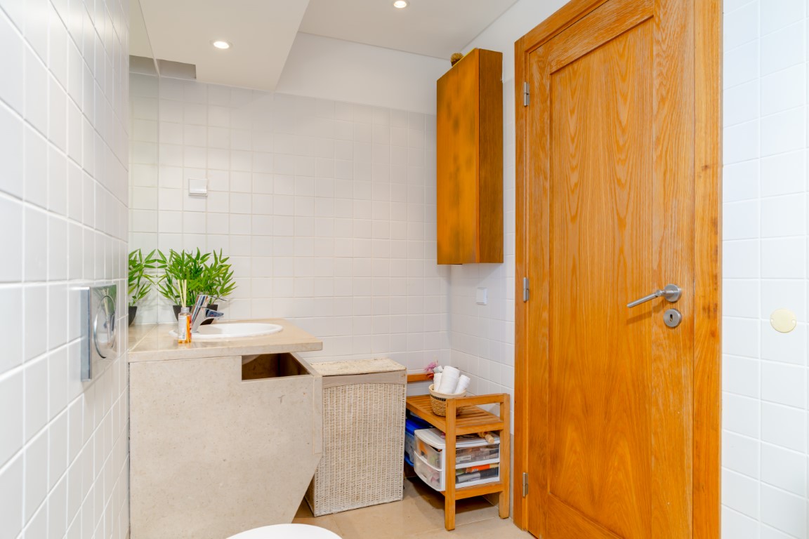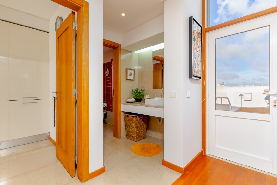 Para completar, a suite principal oferece um amplo roupeiro, acesso privativo a um terraço ensolarado e uma casa de banho privativa com cabine de duche e janela, proporcionando um oásis de tranquilidade dentro de casa.